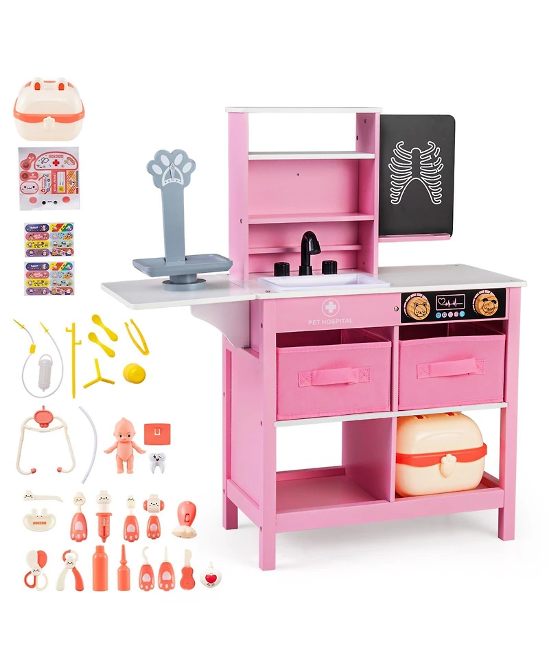 Slickblue Wooden Doctor Office Playset Medical Center Toy with Blackboard