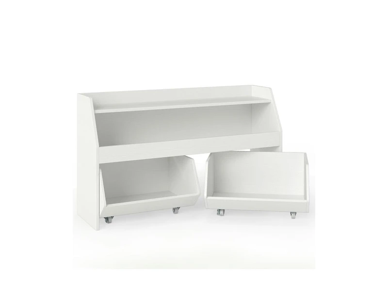 Keep your child s space organized with this wooden toy storage organizer and bookcase, thoughtfully designed for both display and flexible storage. Open shelving provides easy access to books, toys, and decorative items, encouraging independent tidying and daily reading habits. Two movable drawers add versatile storage for smaller toys, art supplies, or accessories, allowing you to reposition them as needed for customized organization. Crafted from durable wood for reliable stability, this unit is built to handle everyday use in busy bedrooms or playrooms. Blending practical functionality with a clean, child-friendly design, it offers a smart solution for maintaining a neat and inviting space.