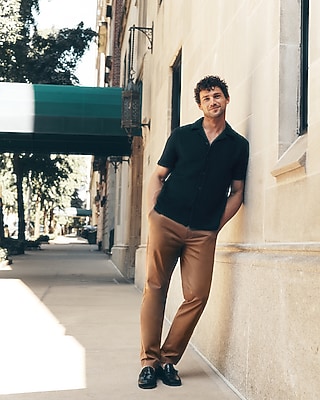 Crafted with stretch threads, our innovative knit Comfort Waist design offers extra flex and extension, while our bestselling Hyper Stretch and temperature-regulating fabric keep you feeling as great as you look. These slim-fit chinos sit below the waist and feature a one-button closure, zip fly, belt loops, slanted hand pockets and buttoned back welt pockets for a sleek, tailored fit.
