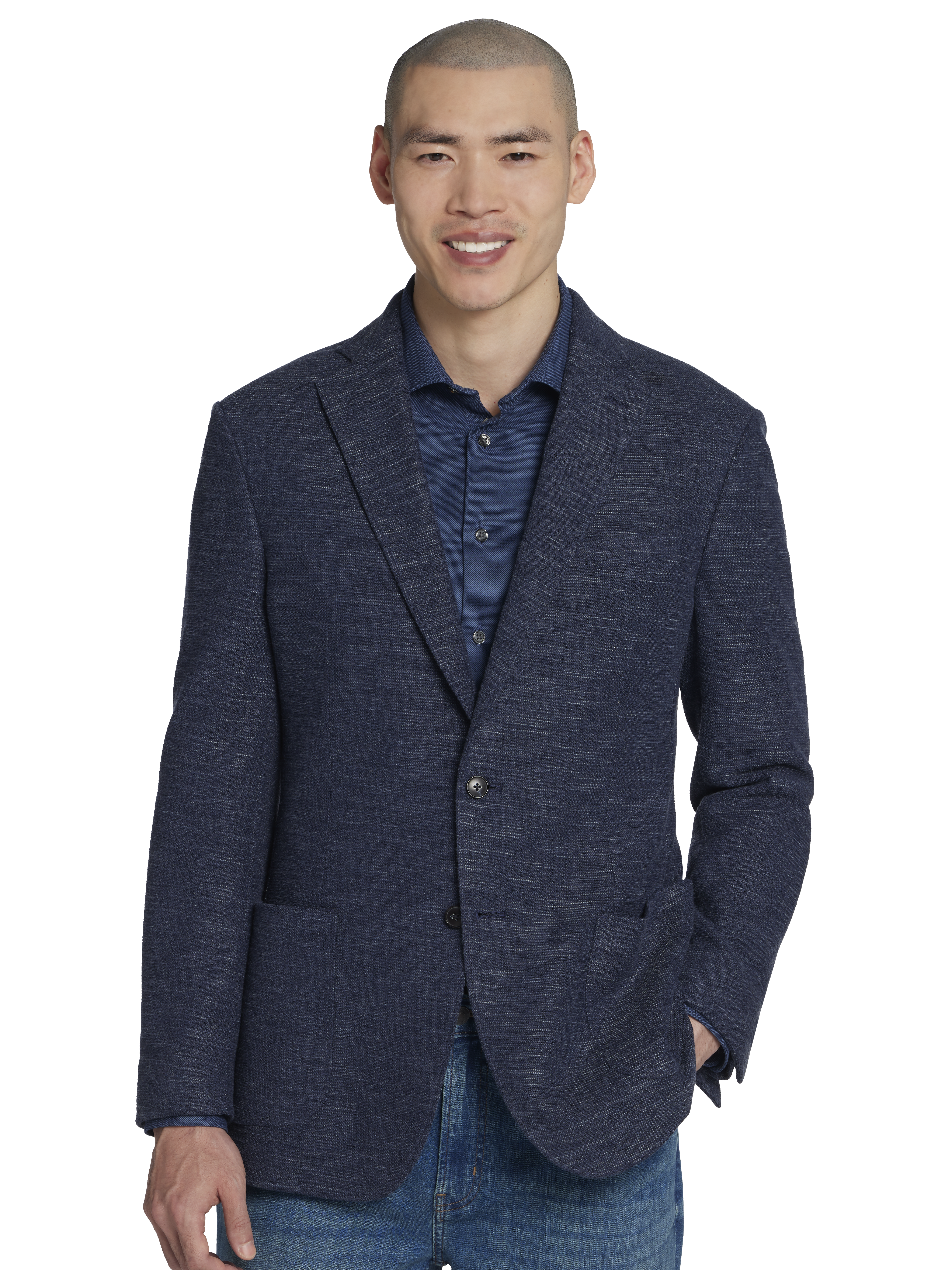 - Un-Lined, Side-Vented, Notch Lapel, Patch Pocket, Slim Fit