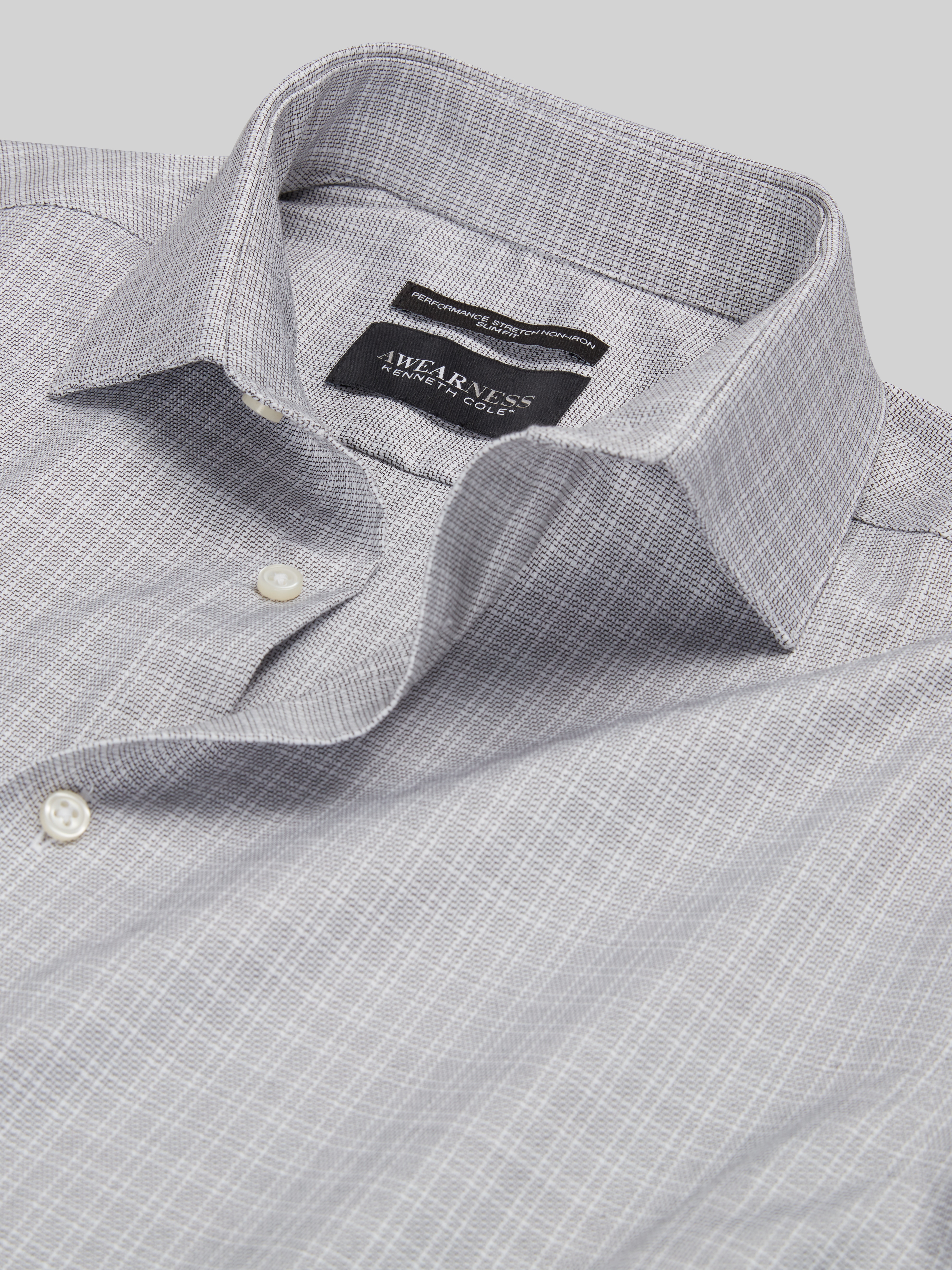 Meet your new go-to for days that call for a little extra polish with zero stiffness. This Slim Fit dress shirt is woven with a subtle grid pattern that adds visual texture and a touch of personality to your look. Crafted from soft cotton with just a hint of stretch, it's designed to move with you, not against you. Because sharp doesn't have to mean serious. This finely crafted garment was designed in New York so the modern man can LOOK GOOD, FOR GOOD. A contribution from all AWEARNESS products will help our veterans transition into the workforce.