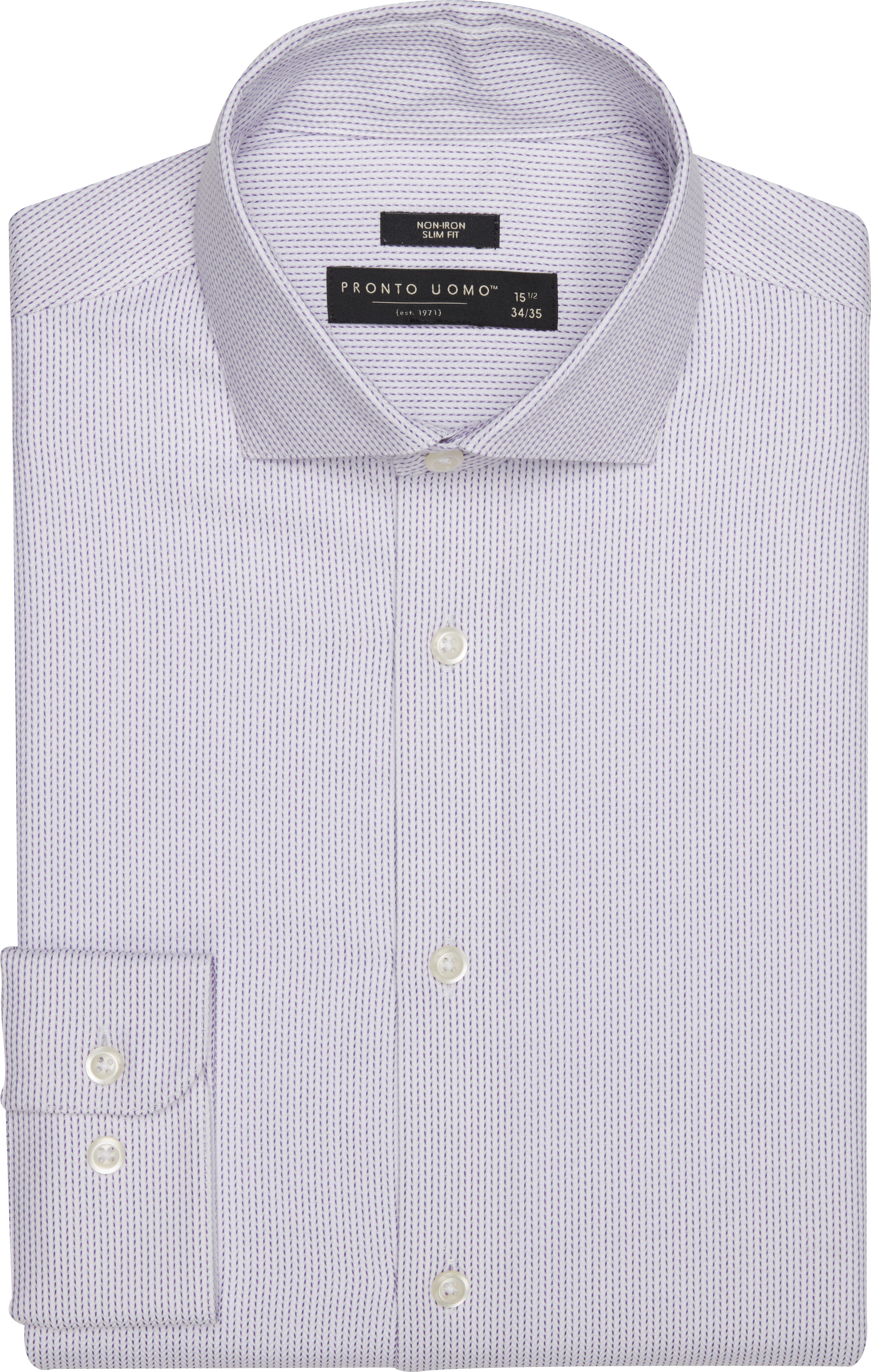 Cut from soft cotton into a sleek, Slim Fit, this handsome dress shirt has built-in stretch to offer you a comfortable fit. Styled with a spread collar, it pairs well with slacks or chinos for a polished look.