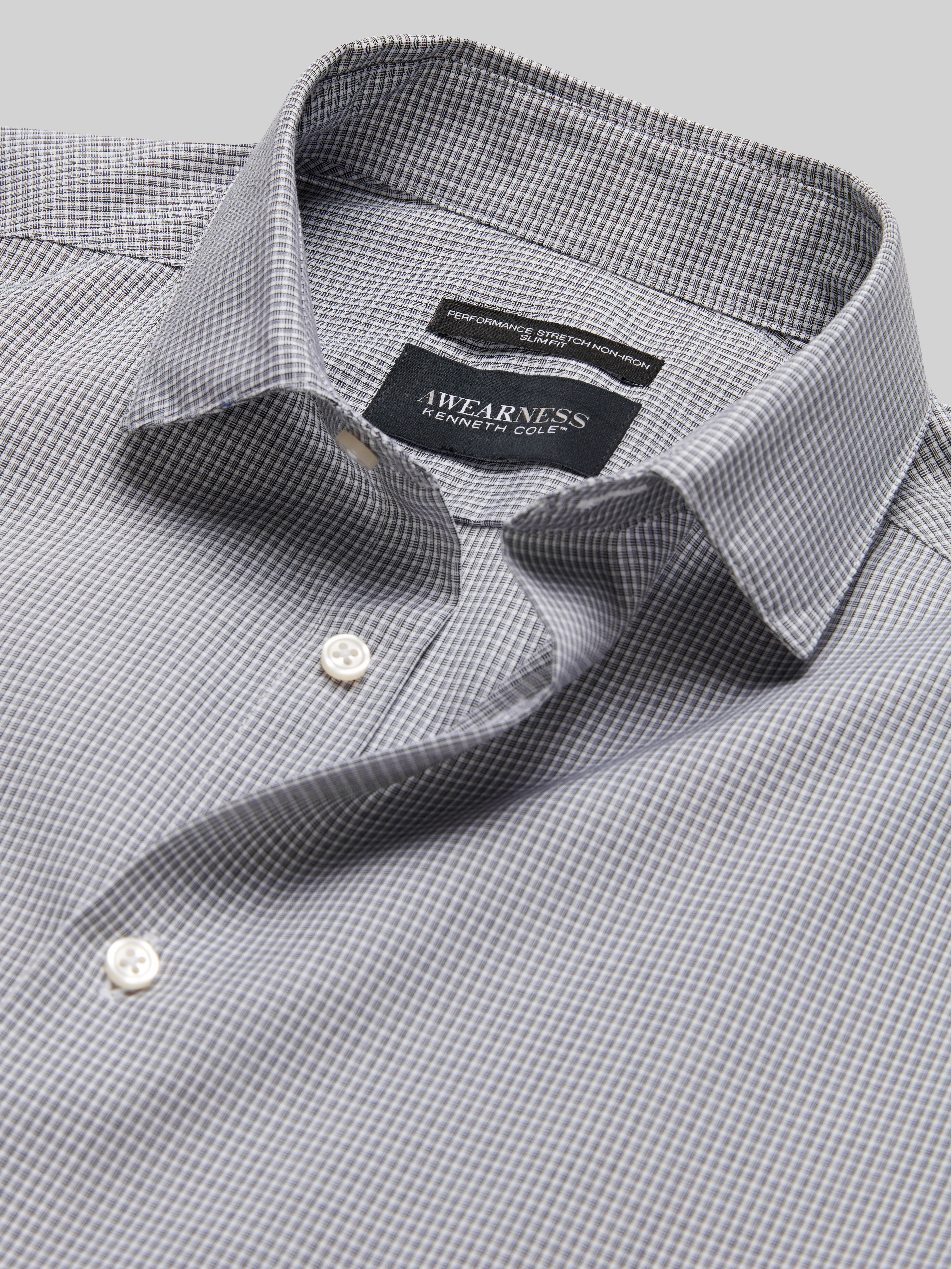 A dress shirt that gets as serious about comfort as it does style. This slim-fit wonder brings ultra-performance stretch to keep you looking sharp and feeling unrestricted - even during those post-lunch meetings. The mini plaid design whispers sophistication, while the spread collar gives it a modern edge perfect for date nights, big presentations, or those "just because I look good" days. Pair it with tailored trousers or your go-to slacks for a polished look thats not trying too hard. Comfort and style? Nailed it.