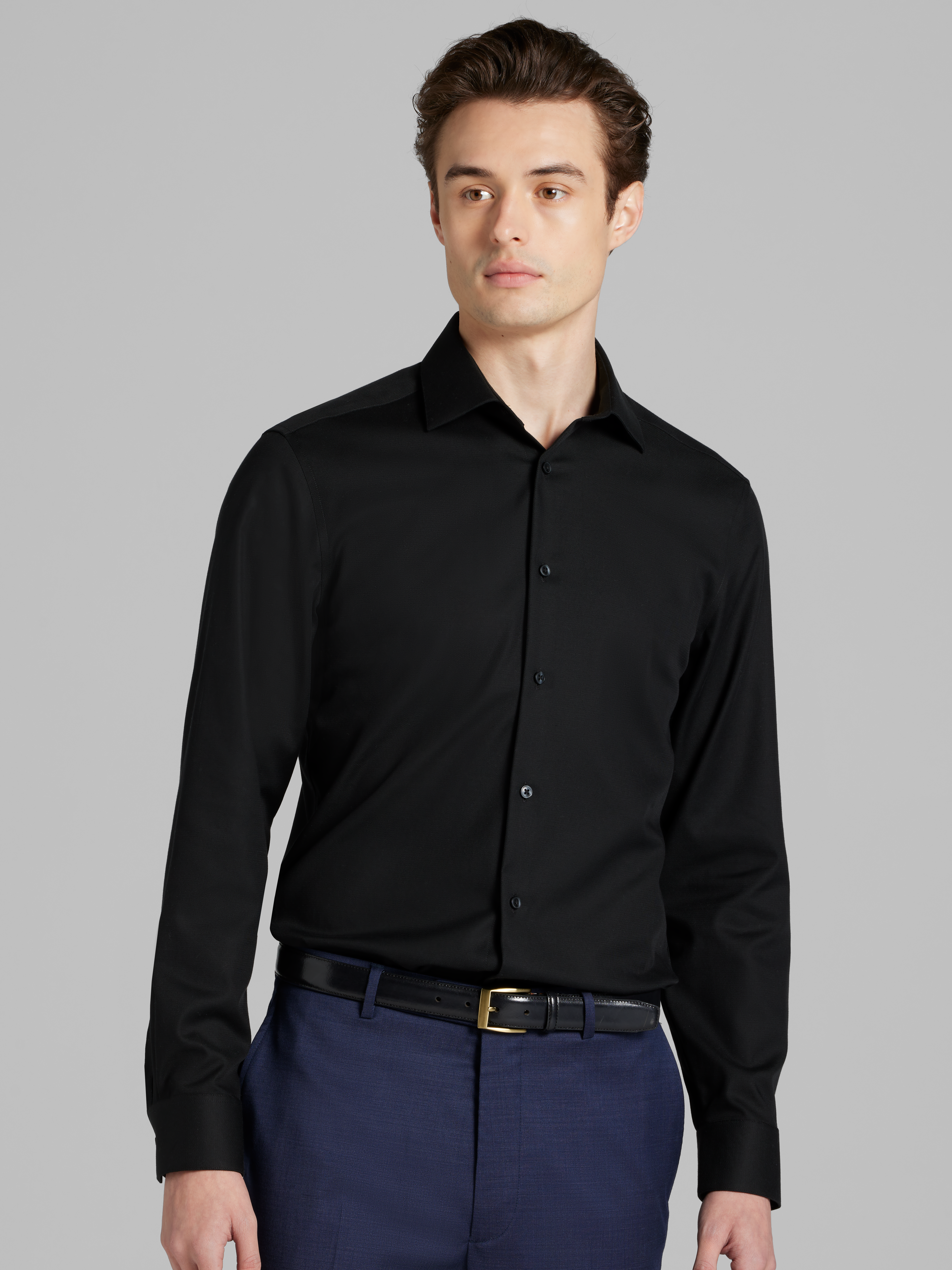 - Long Sleeve, No Pocket, Spread Collar, Barrel Cuff, Slim Fit