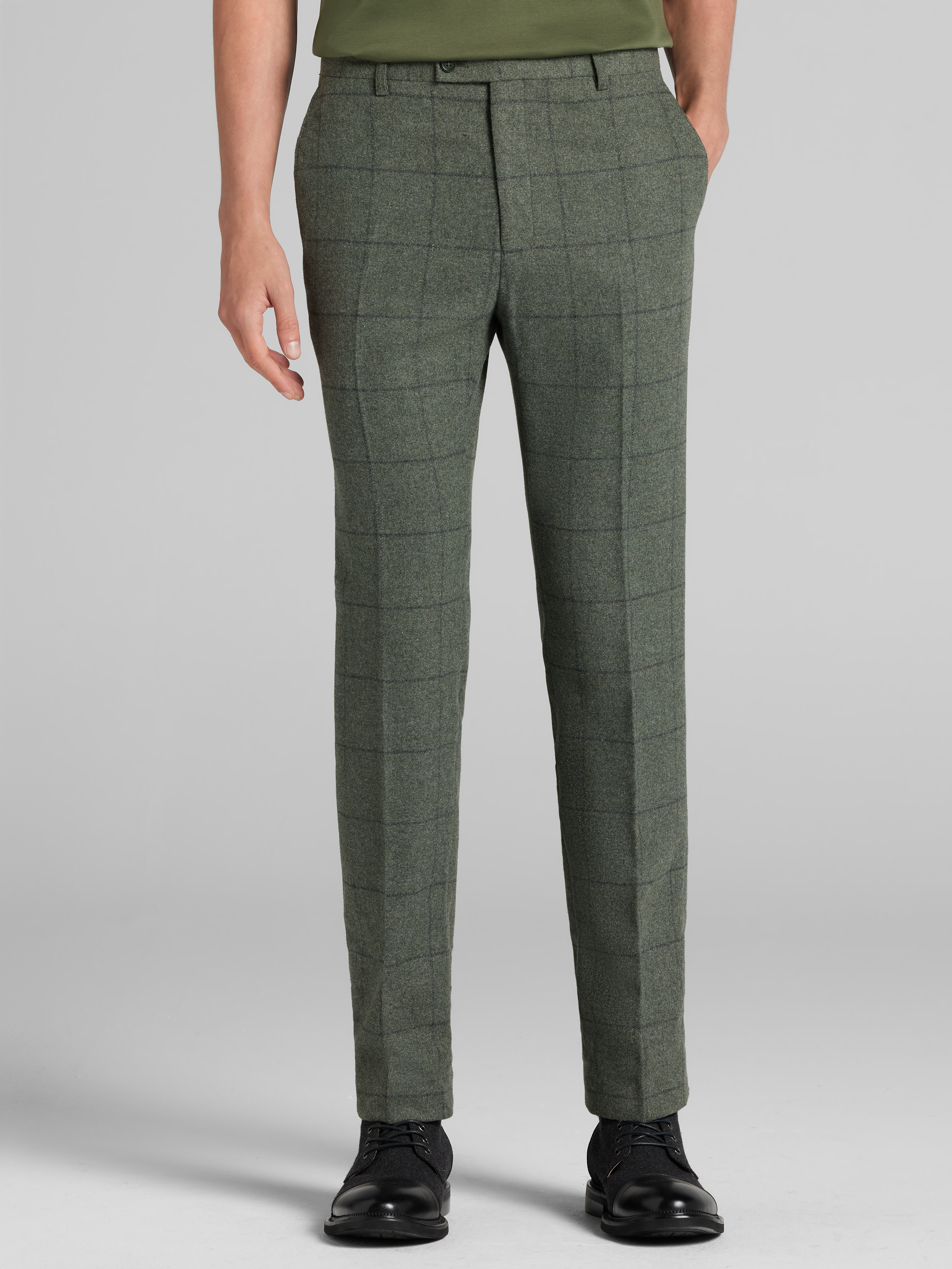 Tailored from a rich wool blend, these Paisley & Gray suit separates pants feature a windowpane plaid pattern that adds a modern edge to a timeless look. The Slim Fit and flat front keep the silhouette sharp and contemporary. With suit separates, you can choose your jacket and pant sizes individually for a fit that feels custom. Paisley & Gray brings a fresh perspective to classic suiting with expressive patterns and updated design details.