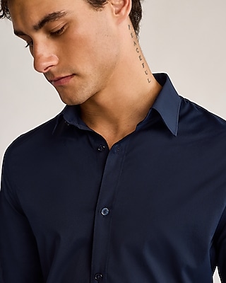 Lightweight and breathable, this dress shirt has your back during long days at the office or nights out on the town. Featuring a versatile solid hue, sharp tailoring and moisture-wicking, wrinkle-resistant, stretch fabric to keep you cool and confident.