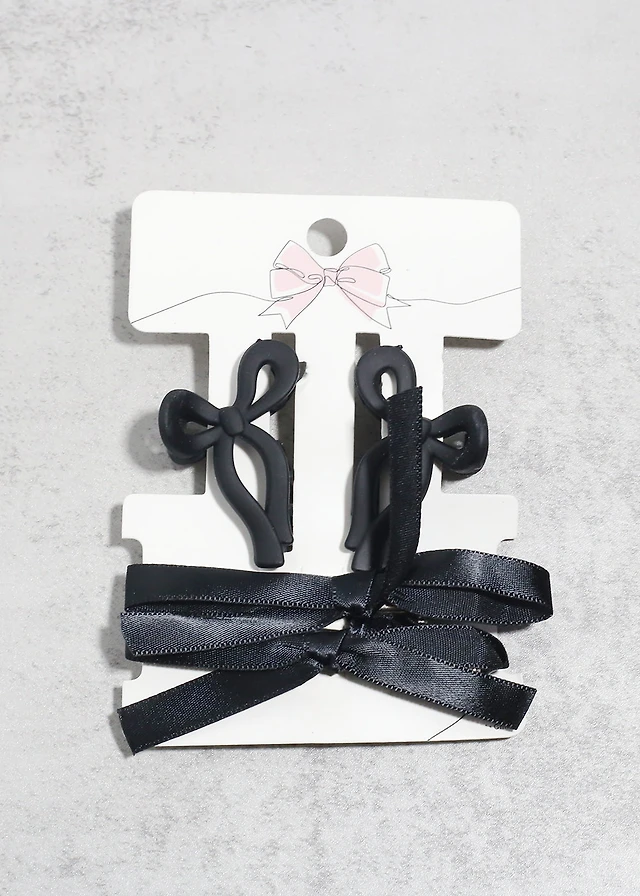 Charmed Finish Faux Leather Bow Hair Clip Set