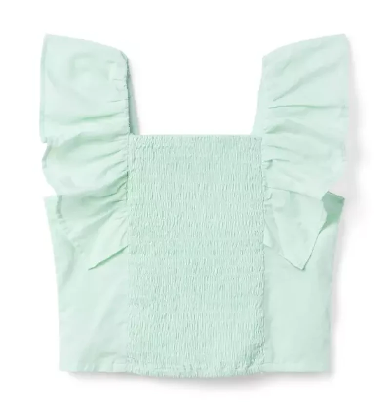 Our top pick for sunny days, featuring ruffle sleeves and smocked details. With a stylish cropped silhouette, our pure cotton top goes perfectly with everything. 100% Cotton Batiste; Lining: 100% Cotton Fully Lined Short Sleeve Button Back Machine Washable; Imported