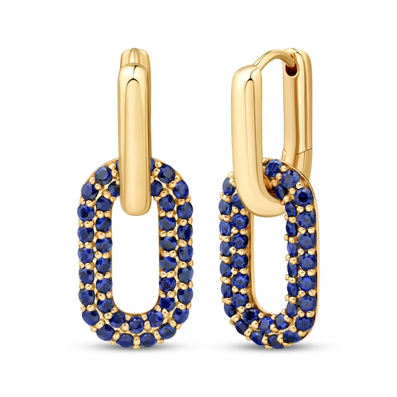 STUDIO BY KAY Blue Lab-Created Sapphire Link Hoop Drop Earrings 24K Yellow Gold Vermeil Sterling Silver