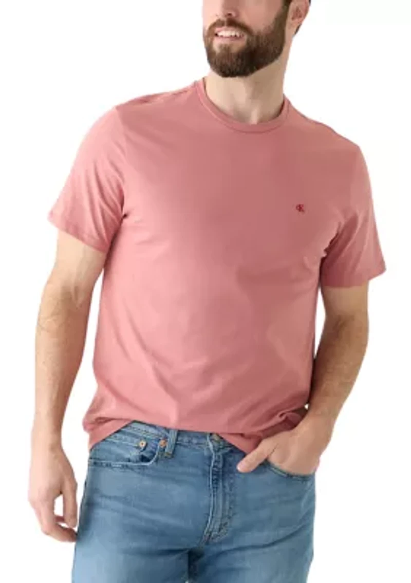 Crafted from compact cotton with an extra sleek feel, Calvin Klein's t-shirt features versatile solid styling for a timeless look. Finished with a crew neck and tonal monogram logo embroidery in a wide array of colors. Solid design for versatile, easy-to-wear styling Fine knit compact cotton for breathable, effortless comfort Classic fit: relaxed through arms, comfortable fit around body Embroidered monogram logo at the chest Crew neck and short sleeves Model is approximately 6'1" wearing size Medium 28.5" long Pullover Crew neck Short sleeves Imported Material & Care Cotton Machine washable