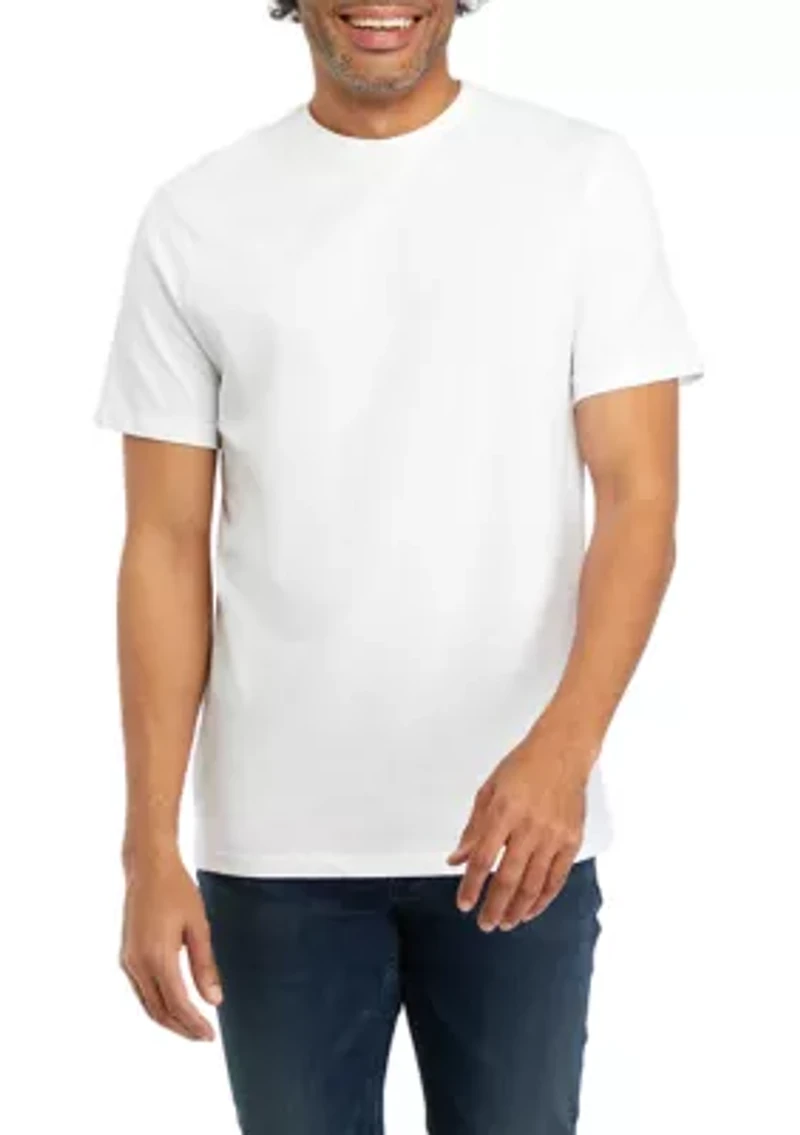 Crafted from compact cotton with an extra sleek feel, Calvin Klein's t-shirt features versatile solid styling for a timeless look. Finished with a crew neck and tonal monogram logo embroidery in a wide array of colors. Solid design for versatile, easy-to-wear styling Fine knit compact cotton for breathable, effortless comfort Classic fit: relaxed through arms, comfortable fit around body Embroidered monogram logo at the chest Crew neck and short sleeves Model is approximately 6'1" wearing size Medium 28.5" long Pullover Crew neck Short sleeves Imported Material & Care Cotton Machine washable