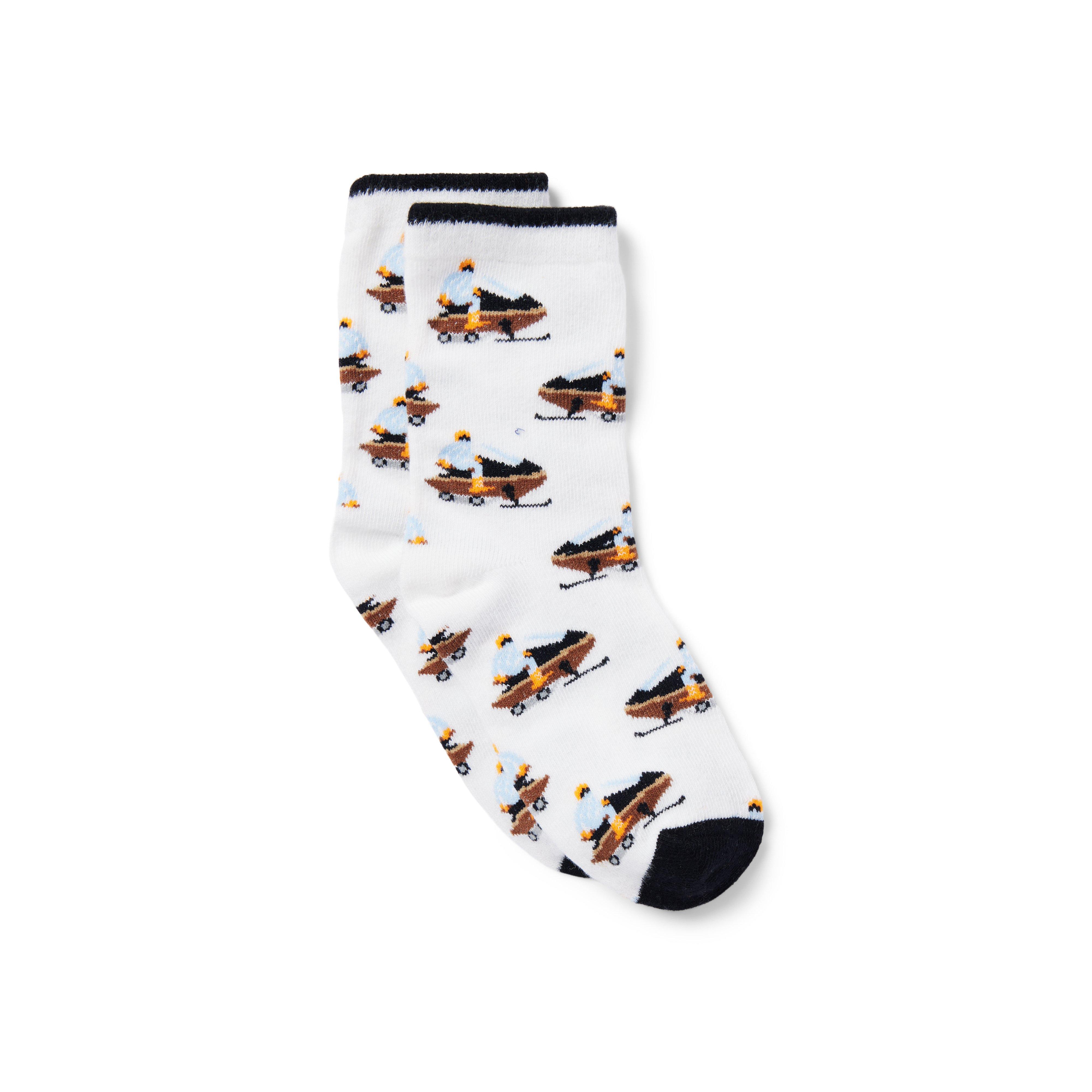 They'll be ready for winter adventures in our soft and stretchy socks with snowmobile icons. 52% Cotton/44% Nylon/4% Spandex Textured Grips (Sizes Up To 12-24M) Machine Wash, Gentle Cycle; Imported