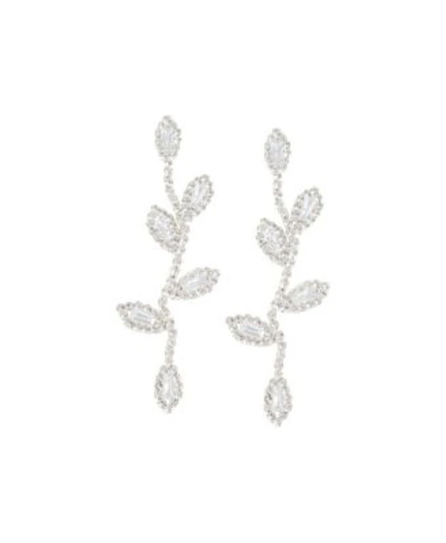 Sohi Womens Silver Embellished Foliage Drop Earrings
