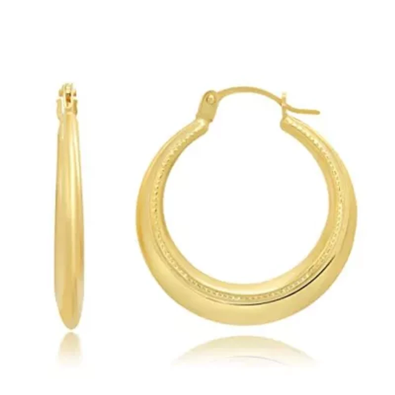 Solid 14K Gold Hoop Earrings for Women | 20mm Beaded Real Gold Hoop Earrings | Hypoallergenic Yellow 14 Karat Round Earring Hoops with Click-top Closure by MAX + STONE Polished finish JO Imported Belk Exclusive Product Specifications 20-MM x 1.5-MM x 20-MM, 20 Material & Care Metal Metal, Gold Clean with a soft cloth.