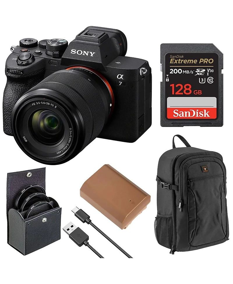Sony Alpha a7 Iv 4K Ultra Hd Mirrorless Camera with Fe 28-70mm f/3.5-5.6 Oss Ii Lens, Bundle with Extreme Pro 128GB Memory Card, Backpack