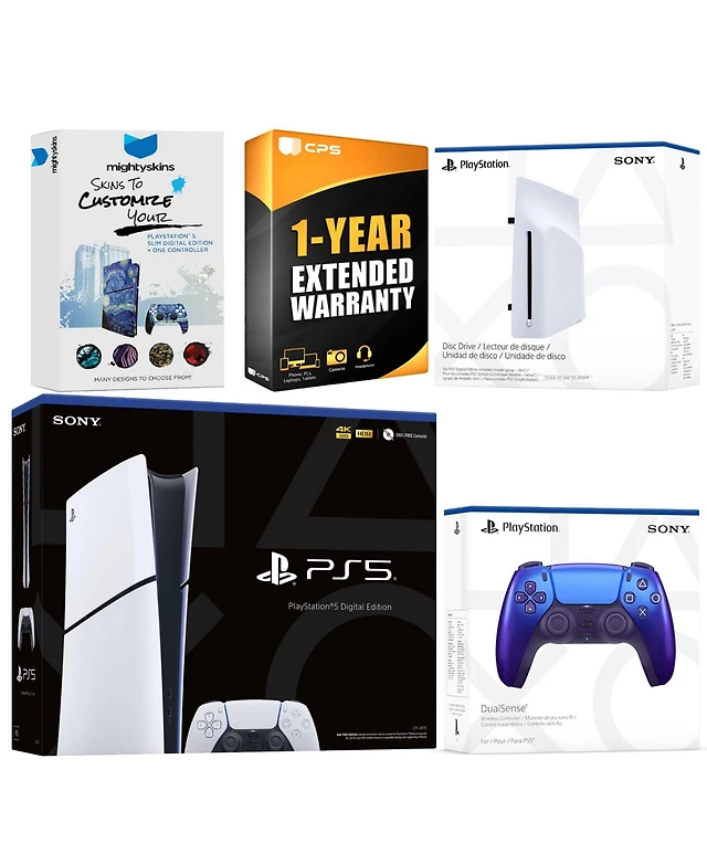 Sony PlayStation 5 Slim Digital Bundle with Disc Drive, Extra Controller, MightySkins Code and 1 Year Extended Warranty