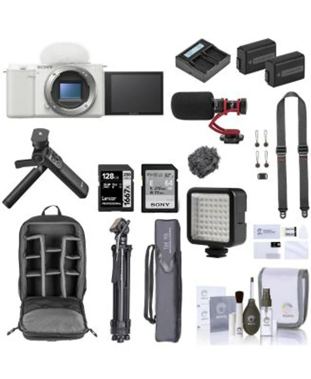 Sony Sony Zv E10 Mirrorless Vlog Camera White Bundle With Vlogger Accessory Kit 128gb Sd Card Backpack 2x Extra Battery Dual Charger Tripod