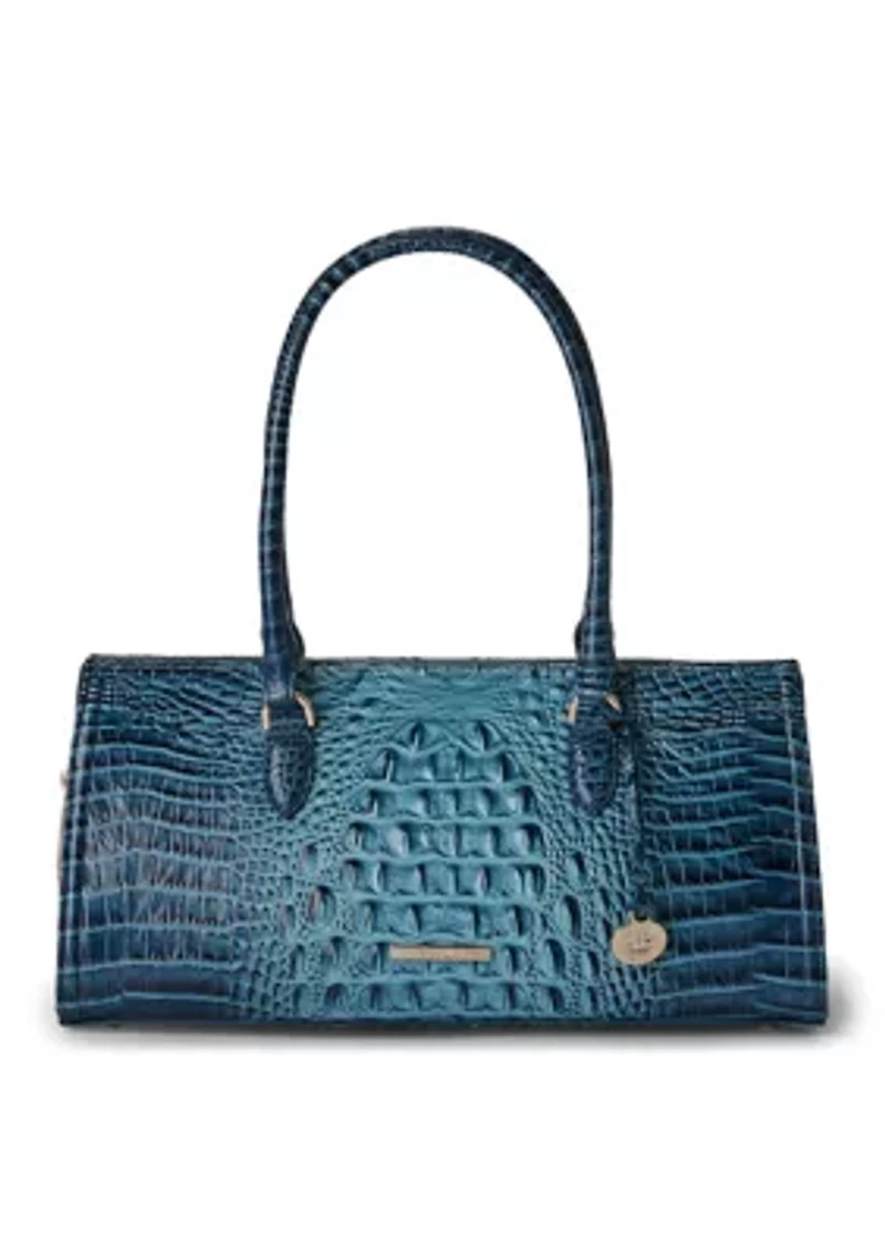 Sophia is a trending elongated satchel with chic modern lines that emphasize the East-West silhouette. The rolled handles are made for easy over-the-shoulder carrying and the zip top closure keeps your essentials safe. Interior pockets are the perfect way to stay organized. Satchel Zip top closure Back slide in pocket Rolled handles Double kangaroo and pen pocket Interior zip pocket Key clip Footed bottom 8.5-inch strap drop Imported Product Specifications 14.5'' W x 6.5'' H x 6'' D Material & Care Leather Clean with a soft cloth
