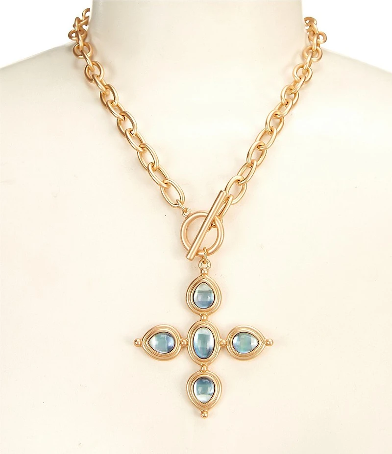 Southern Living Aqua Shell Multi Shape Cross Short Pendant Necklace