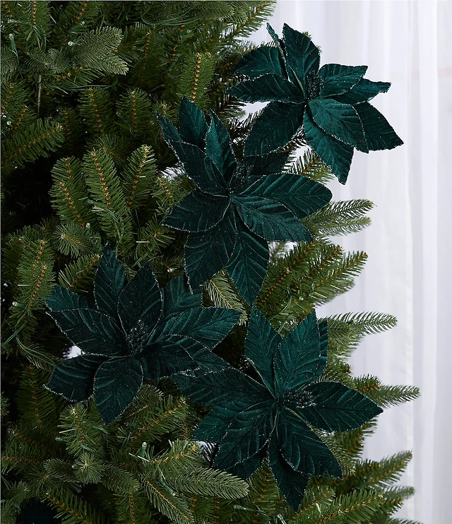 Southern Living Evergreen Collection Fabric Green Flower Pick, Set of 4