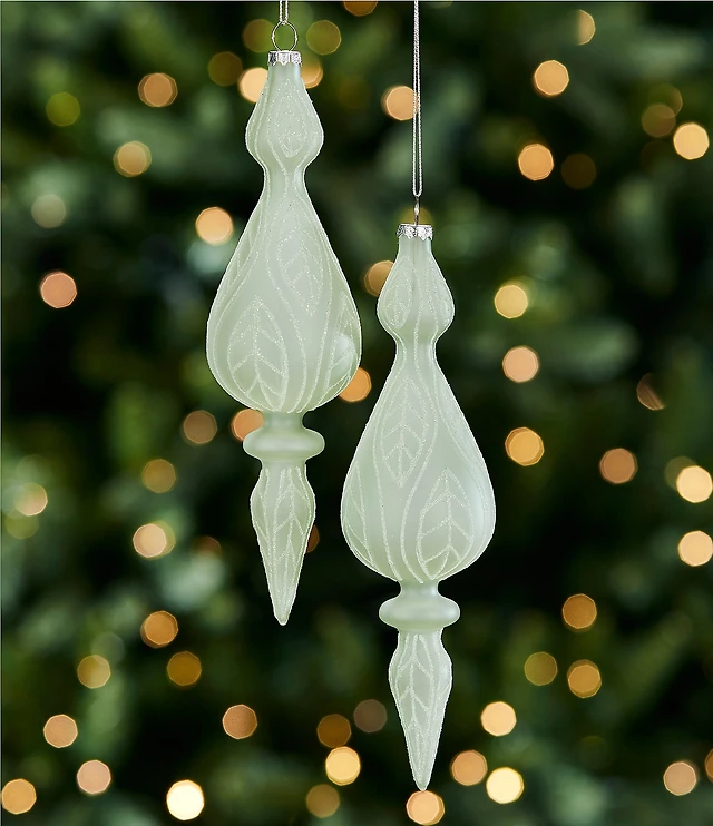 Southern Living Evergreen Collection Sage Glitter Finial Ornament, Set of 2