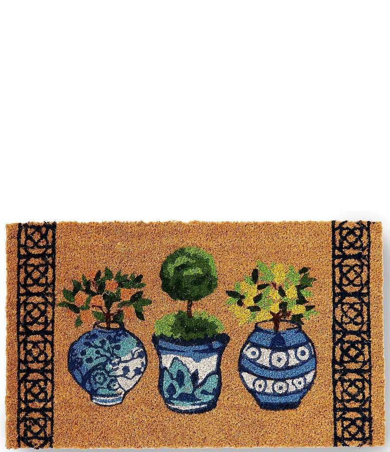 From the Summer Shop Collection by Southern Living, the Topiary Door Mat features: Made of 100% Coir with PVC backing Approx. 18 x 30" For indoor or outdoor use under sheltered area Care instructions: To prolong the life of your doormat, do not place in direct sunlight or where it will remain wet for a long period of time. Shedding is normal during initial month of use. During this period, simply brush or shake the mat to maintain its best appearance. Imported. Southern Living is a trademark of TI Lifestyle Group, LLC, a subsidiary of Meredith Operations Corporation, and is used under license.