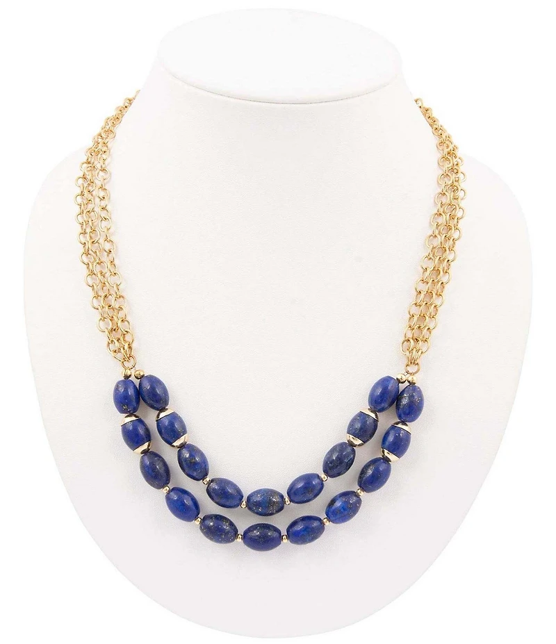 From Southern Living x Barse, this necklace features: Statement necklace Gold tone hardware Lapis stone Lobster claw closure Approx. 16" - 18" L Imported.