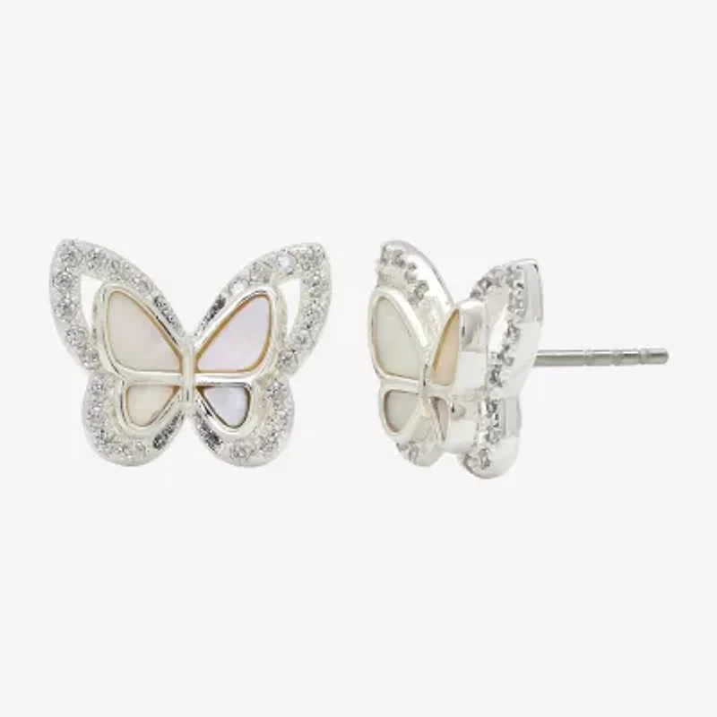 Sparkle Allure Halo White Mother Of Pearl Cultured Freshwater Pearl 13mm Butterfly Stud Earrings