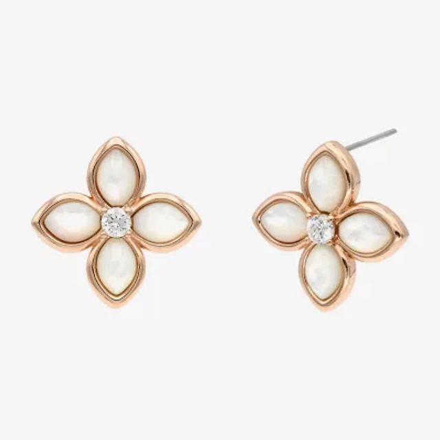 Sparkle Allure Pink Mother Of Pearl 18K Rose Gold Over Brass 30mm Flower Stud Earrings