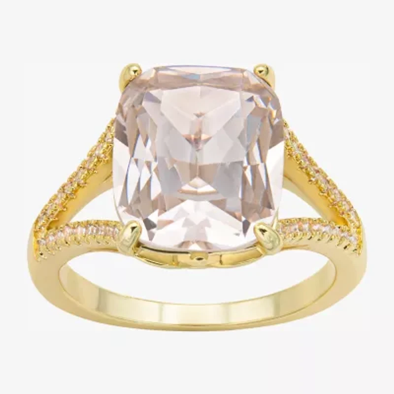 Sparkle Allure Split Shank Womens Pink Cubic Zirconia 14K Gold Over Brass Cocktail Ring