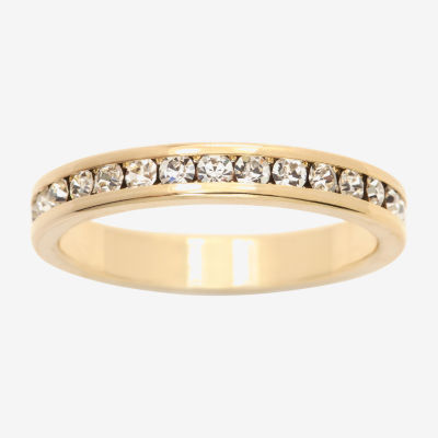 Sparkle Allure Stackable Eternity Womens 3MM Crystal 14K Gold Over Brass Band
