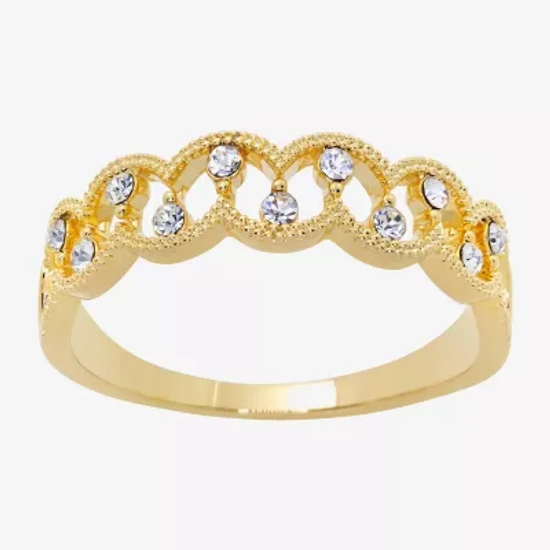 Sparkle Allure Station Womens 2.5MM Crystal 14K Gold Over Brass Band