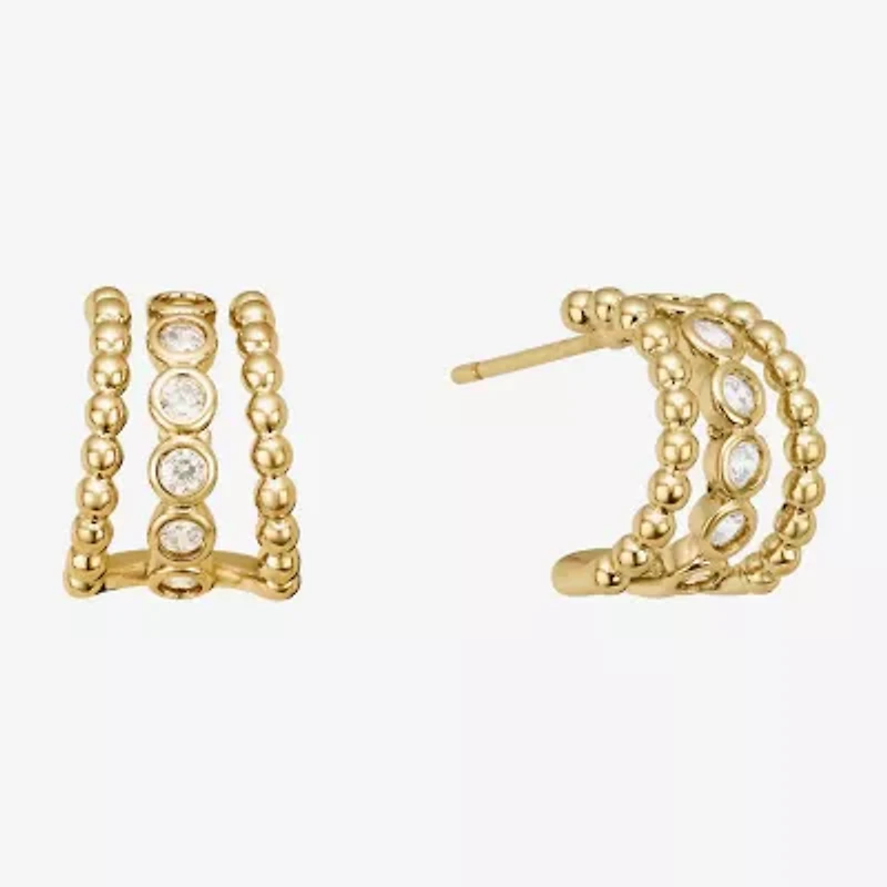 Sparkle Allure Triple Womens Cubic Zirconia 14K Gold Over Brass 12.4mm Hoop Earrings