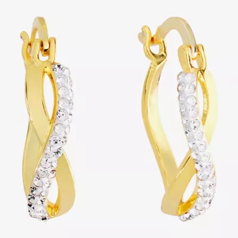 Sparkle Allure Twist Womens Crystal 24K Gold Over Brass 22.3mm Hoop Earrings