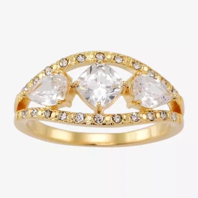 Sparkle Allure Womens 4MM Crystal 14K Gold Over Brass Cushion 3-Stone Band
