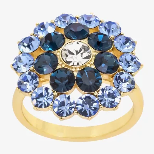 Sparkle Allure Womens Blue Crystal 14K Gold Over Brass Flower Cocktail Ring