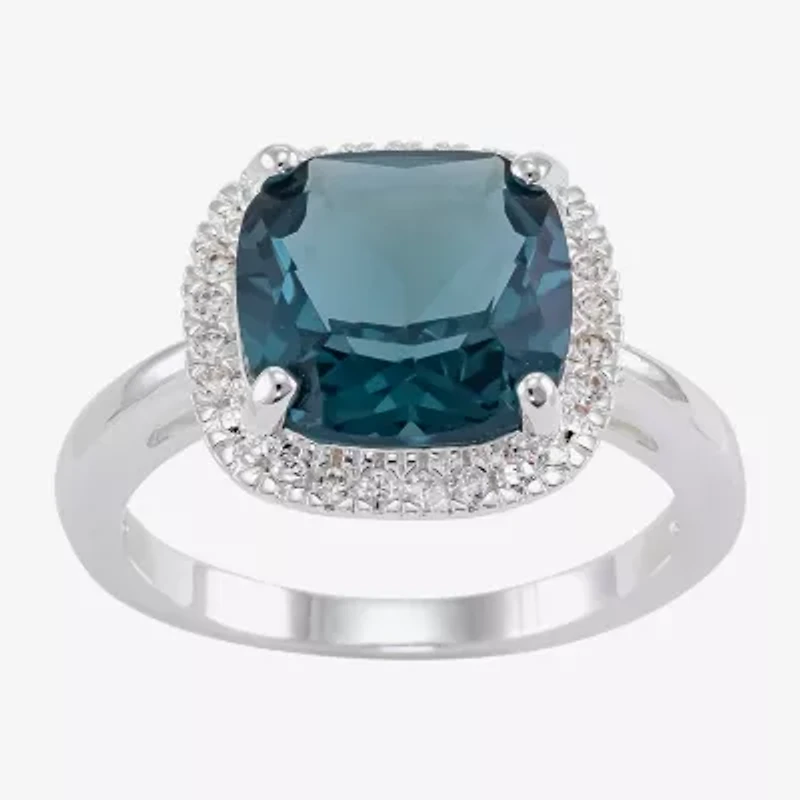 Sparkle Allure Womens Blue Crystal Pure Silver Over Brass Cushion Halo Cocktail Ring