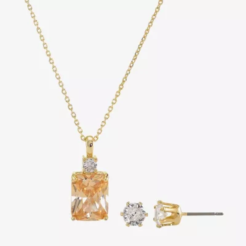 Sparkle Allure Womens Champagne Cubic Zirconia 14K Gold Over Brass Rectangular 2-pc. Jewelry Set