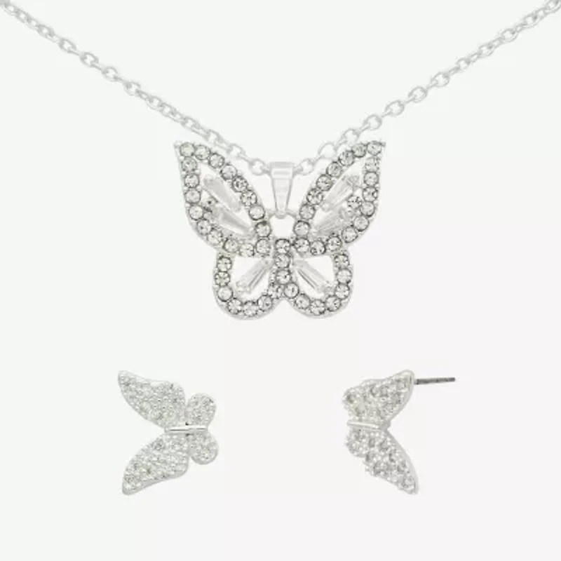 Sparkle Allure Womens Cubic Zirconia Pure Silver Over Brass Butterfly 2-pc. Jewelry Set