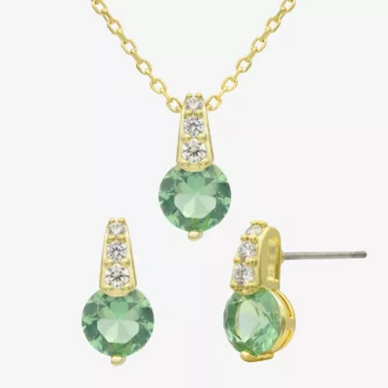 Sparkle Allure Womens Green Crystal 14K Gold Over Brass Round 2-pc. Jewelry Set