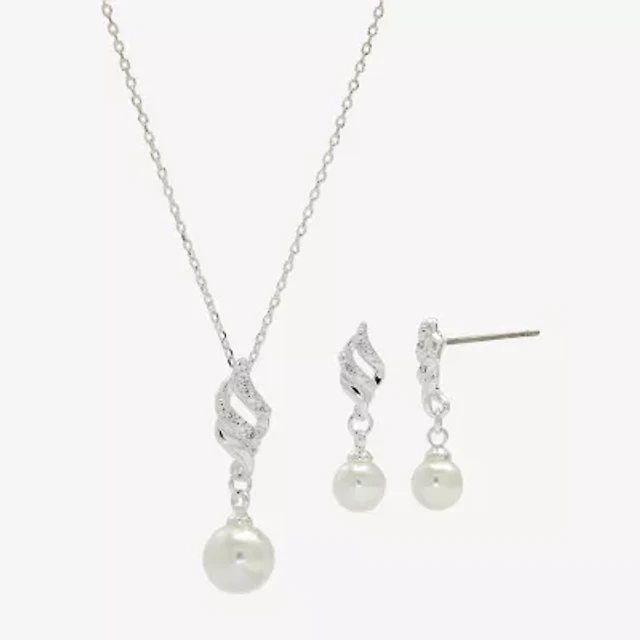 Sparkle Allure Womens Simulated Pearl Pure Silver Over Brass 2-pc. Jewelry Set