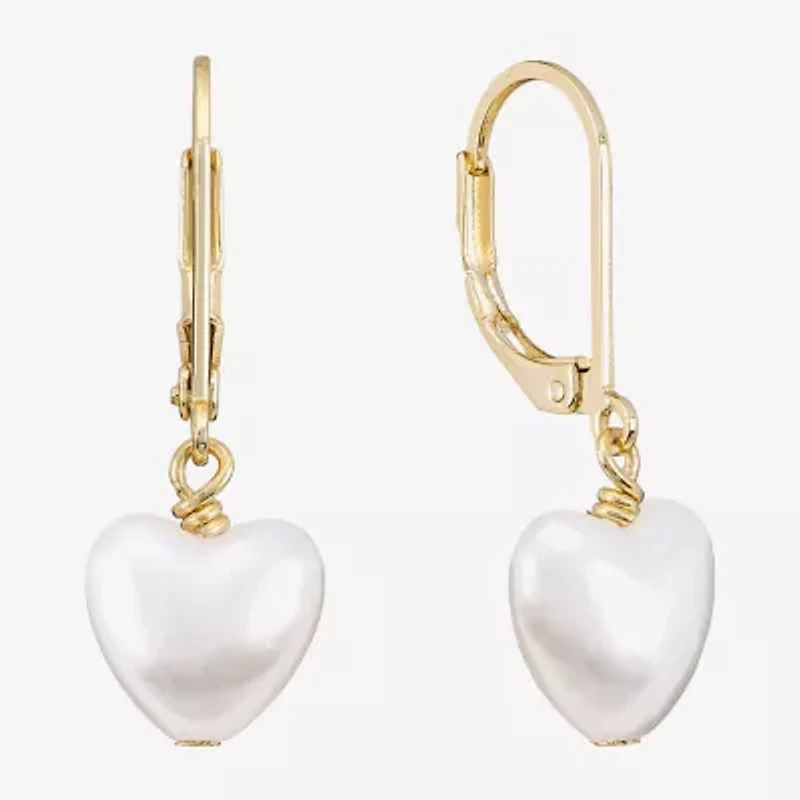 Sparkle Allure Womens White Simulated Pearl 14K Gold Over Brass Heart Drop Earrings