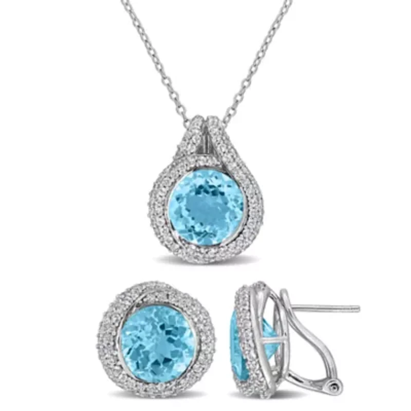 Sparkling Gemstone & White Topaz Pendant Earring Jewelry Set Sterling Silver