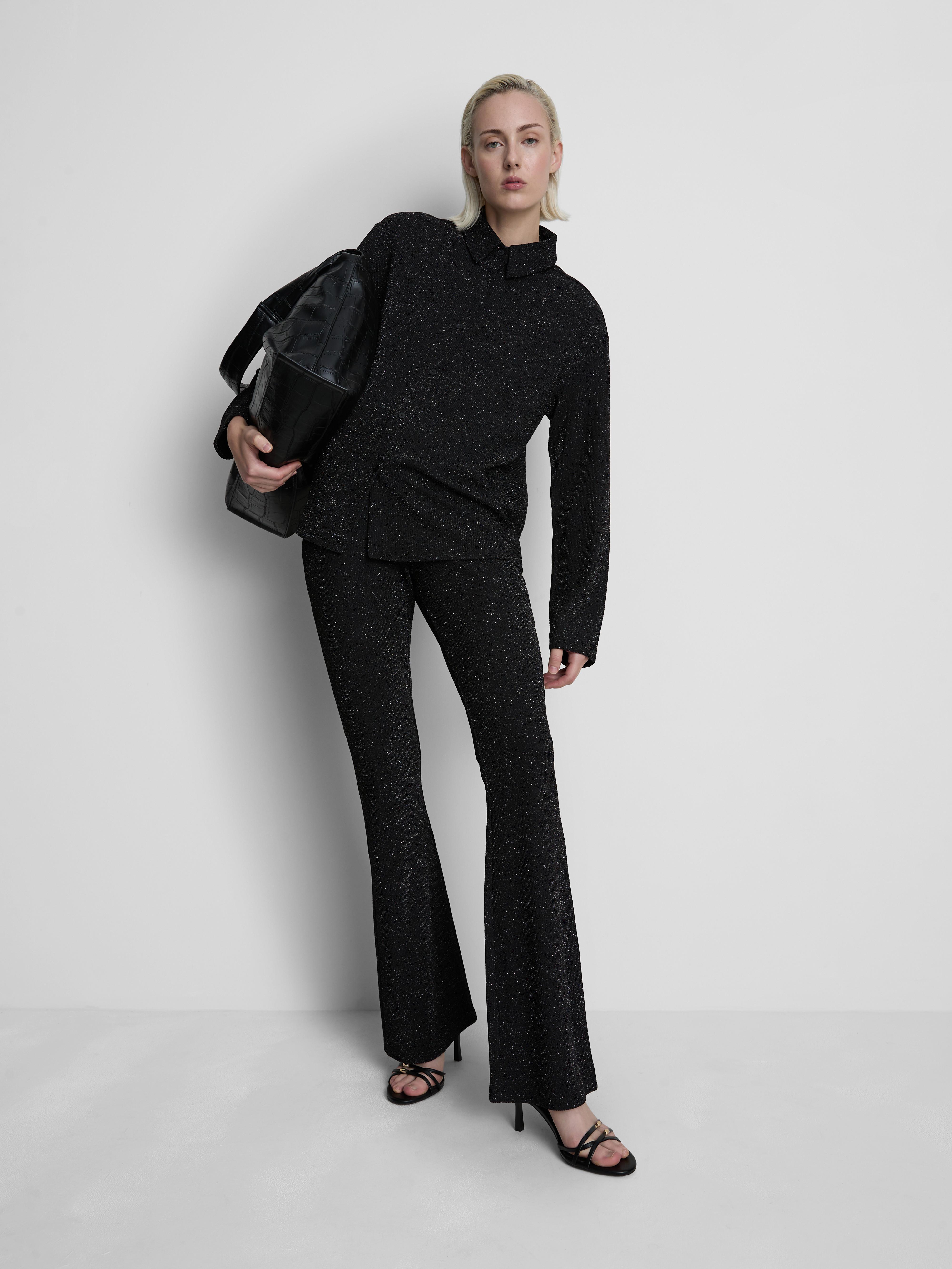 Knitted rib shirt with long sleeves and metallic yarn intertwined for added sparkle