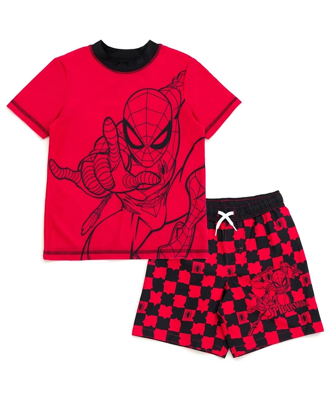 Spider-Man Boys Marvel Upf 50+ Rash Guard and Swim Trunks Outfit Set