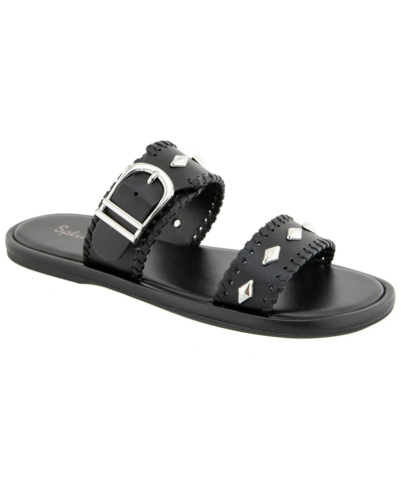 The Splendid Felix is a statement slide sandal with two bands accented by elongated studding and buckle details, blending modern edge with easy, everyday wearability.
