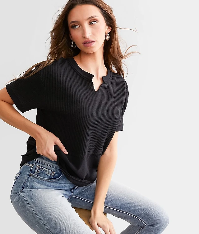 Washed Waffle Knit Top