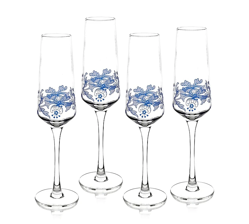 Spode's Blue Italian champagne flutes bring additional sophistication to your tablescape. A delicate floral pattern in soft blues complement the dinnerware pattern for that special occasion.
