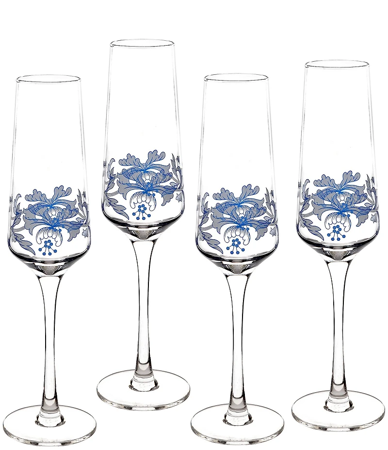 Spode Blue Italian Collection Flute Glasses, Set of 4