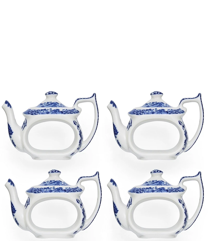 Spode Blue Italian Collection Teapot Napkin Rings, Set of 4